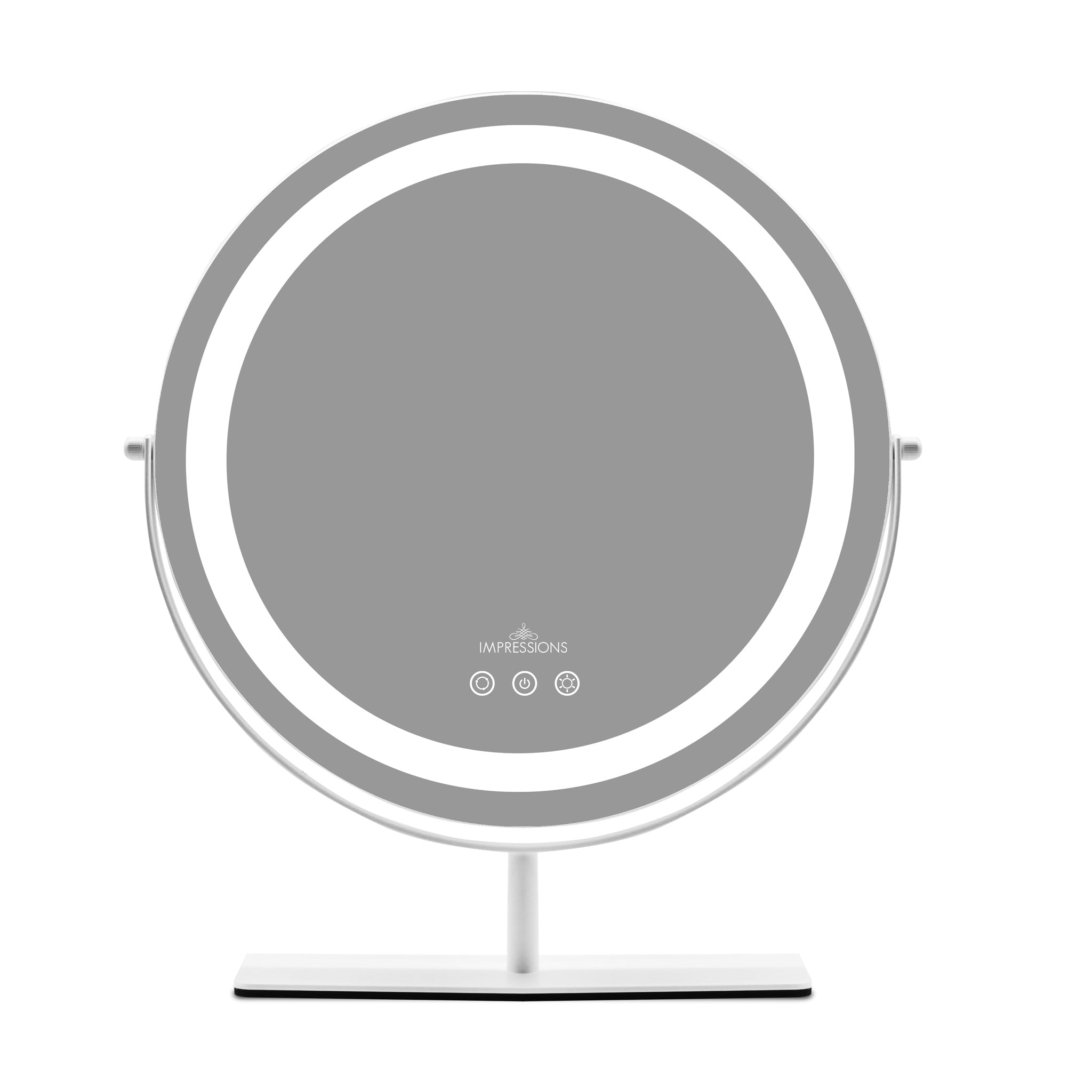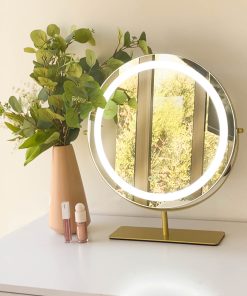 Wake up ready to take on the world. Aura is a circular makeup mirror equipped with a dimmable LED strip light and 360 degree motion, allowing you to fine-tune all the delicate details of your glam look. Also donning a contemporary design with a high-quality frame, this mirror is built to last, and displays nicely in any environment. This round makeup mirror is the perfect choice for beginners and expert makeup lovers alike, and puts the FUN in functional lighted makeup mirrors.