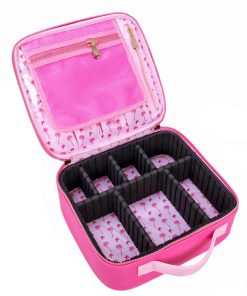 Experience the unique blend of organization and style with our exclusive Special Edition Barbie™ Cosmetic Bag. This bag features a Malibu Barbie Print with its puff-embossed Barbie logo and palm trees adorning the front.When you unzip the bag, you’ll be greeted by the iconic Barbie silhouette and palm trees, transforming the spacious interior into a miniature paradise. Designed for ultimate convenience, it comes with removable dividers, a handy mesh pocket, a vinyl-lined brush holder flap, and an extra zippered interior pocket.With this chic Barbie Cosmetic Bag, staying organized has never been this effortless.