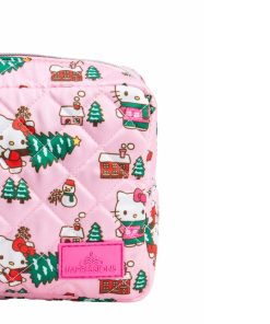 This cozy makeup pouch features a diamond quilted exterior and cozy artwork throughout. Unzip to utilize the spacious interior with an inner slip pocket and an additional velcroed slip pocket on the back.