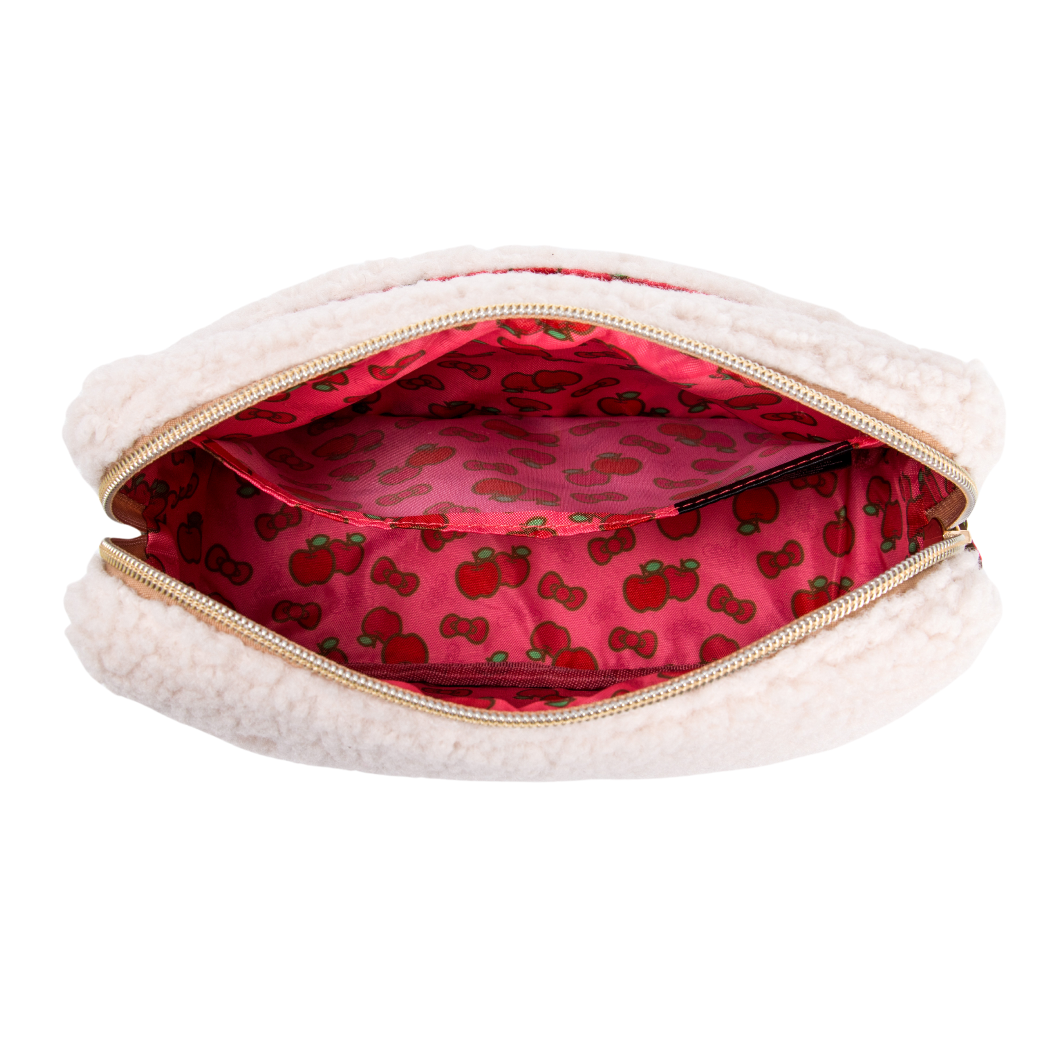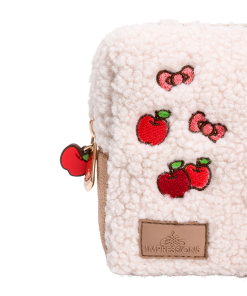 Embrace the sweetness of a fresh apple harvest with this charming cosmetic pouch! This supercute pouch is perfect for those on the move, featuring a soft cream sherpa exterior and neutral hues to match any aesthetic. Utilize the spacious interior space with a slip pocket and an additional slip pocket on the back.