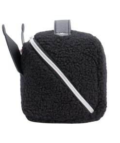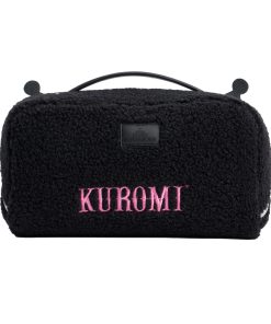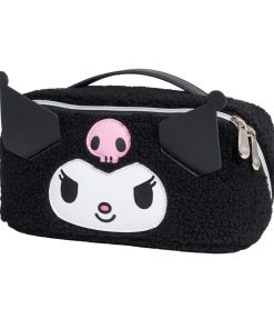 Keep all of your beauty and travel essentials together in this devilishly cute makeup bag! This cozy bag features Kuromi’s face embroidered on the front, 3D ears, and signature skull applique.Flip to the backside to reveal Kuromi’s signature logo!