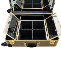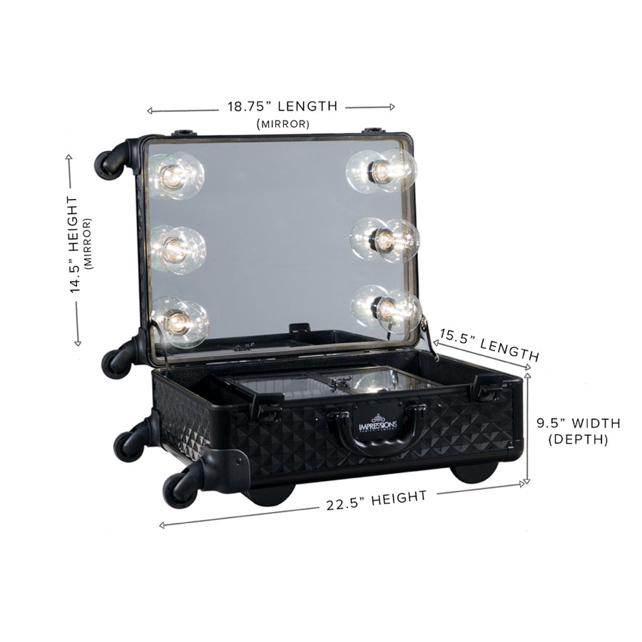 Slay anywhere with our Slaycase XLS Makeup Vanity Case! This case comes with everything you’ll need from its built-in mirror it the classic Hollywood style light bulbs. Plug in the case to an outlet and power up the lights with the dimmer switch so you can get that ideal lighting. The case also has a USB port and electrical outlet for powering up your vanity items. The SlayCase has features tiered compartments that are detachable and can hook to the sides for extra room. Once you’re done, simply pack up and roll away with your vanity set!
