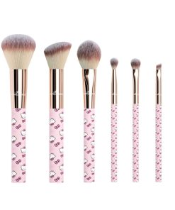 This Hello Kitty® Supercute Signature 6-PC Brush Gift Set is a star essential for any makeup lover or collector. It includes six pieces of professional-grade makeup brushes nestled on a pink stand base and a transparent 3D Hello Kitty cloche to protect the brushes from dust!