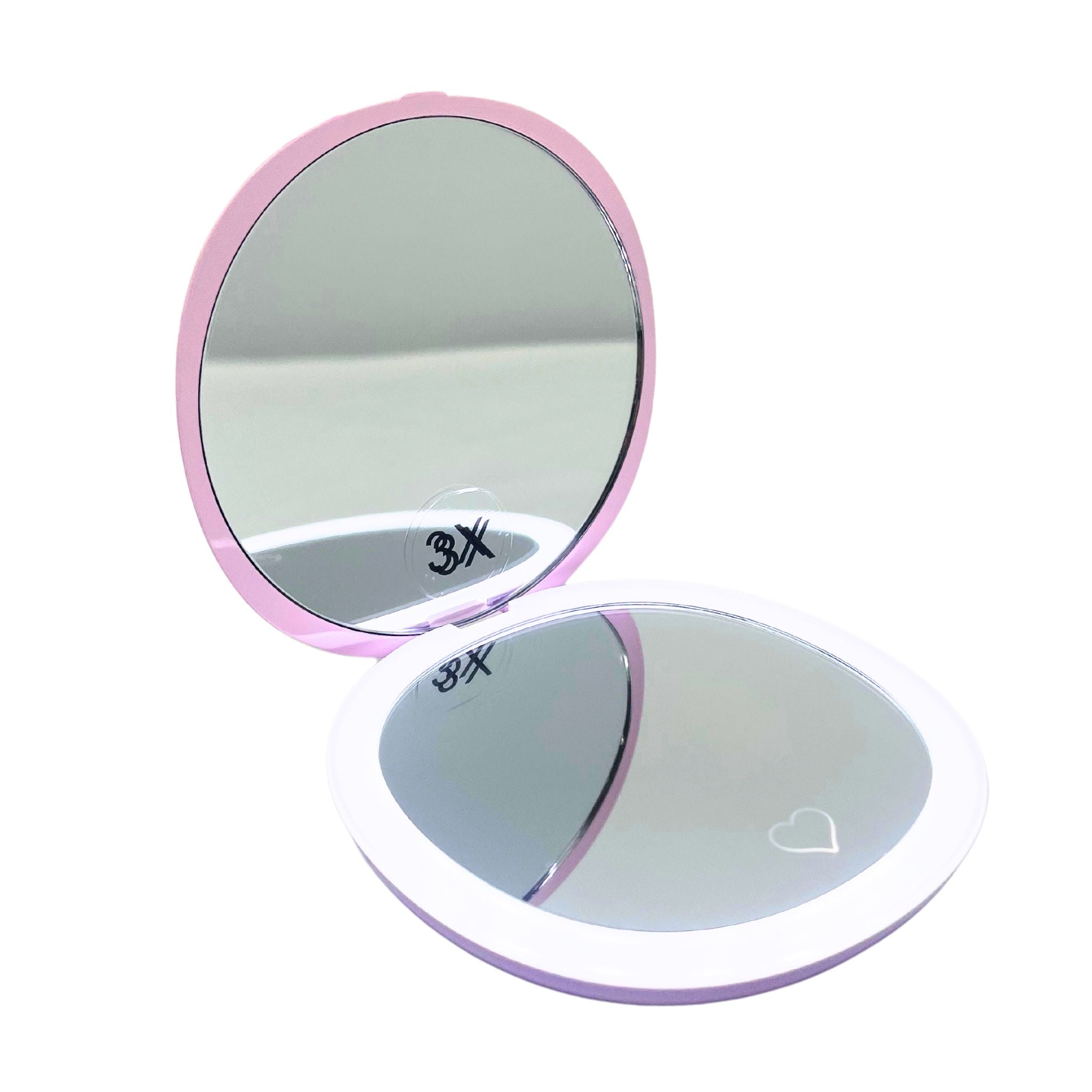 Designed for travel and daily use, this compact mirror features both a regular and magnifying mirror, built-in LED lighting, and a rechargeable design for effortless touch-ups wherever you are!