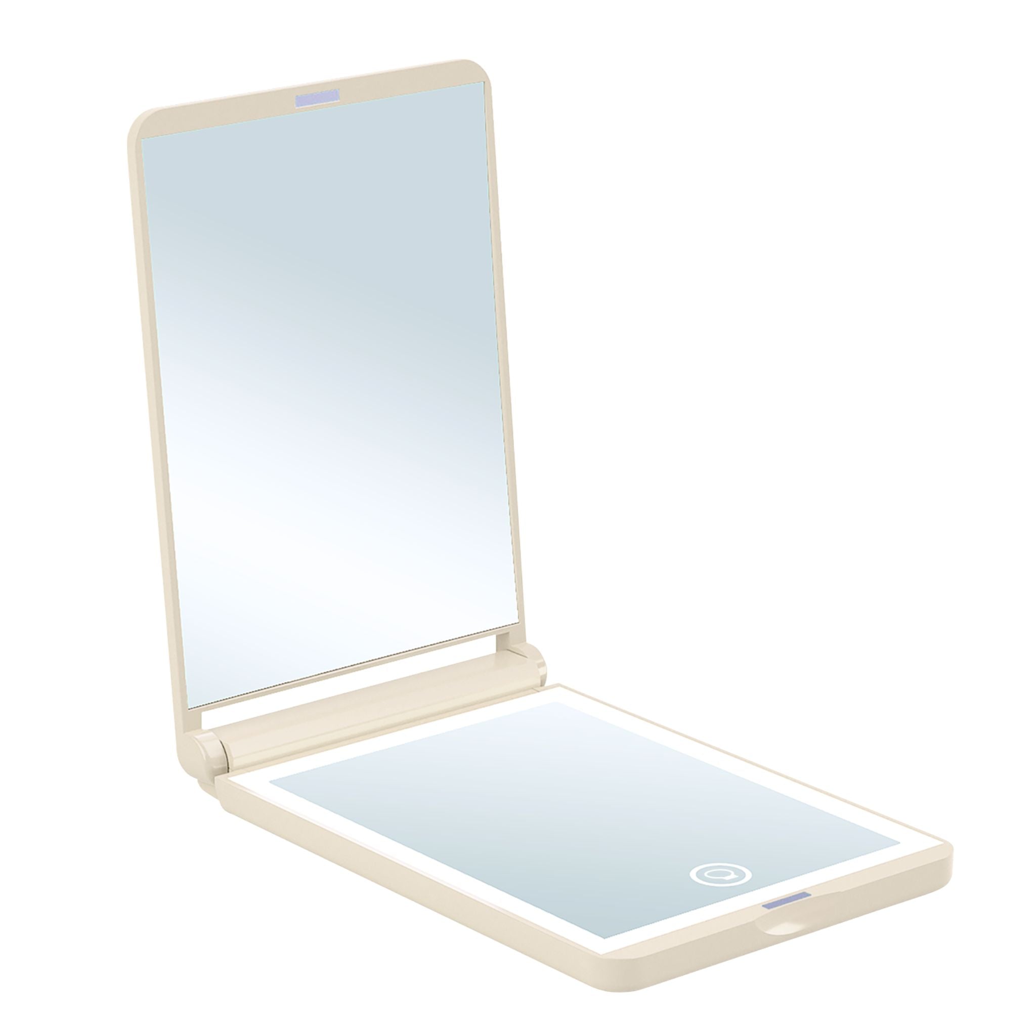 Get ready on the go with this rechargeable, bifold LED compact mirror that has all the features you need to stay curiously chic—complete with a soft touch dimmer sensor, automatic shut-off, and a slim portable design