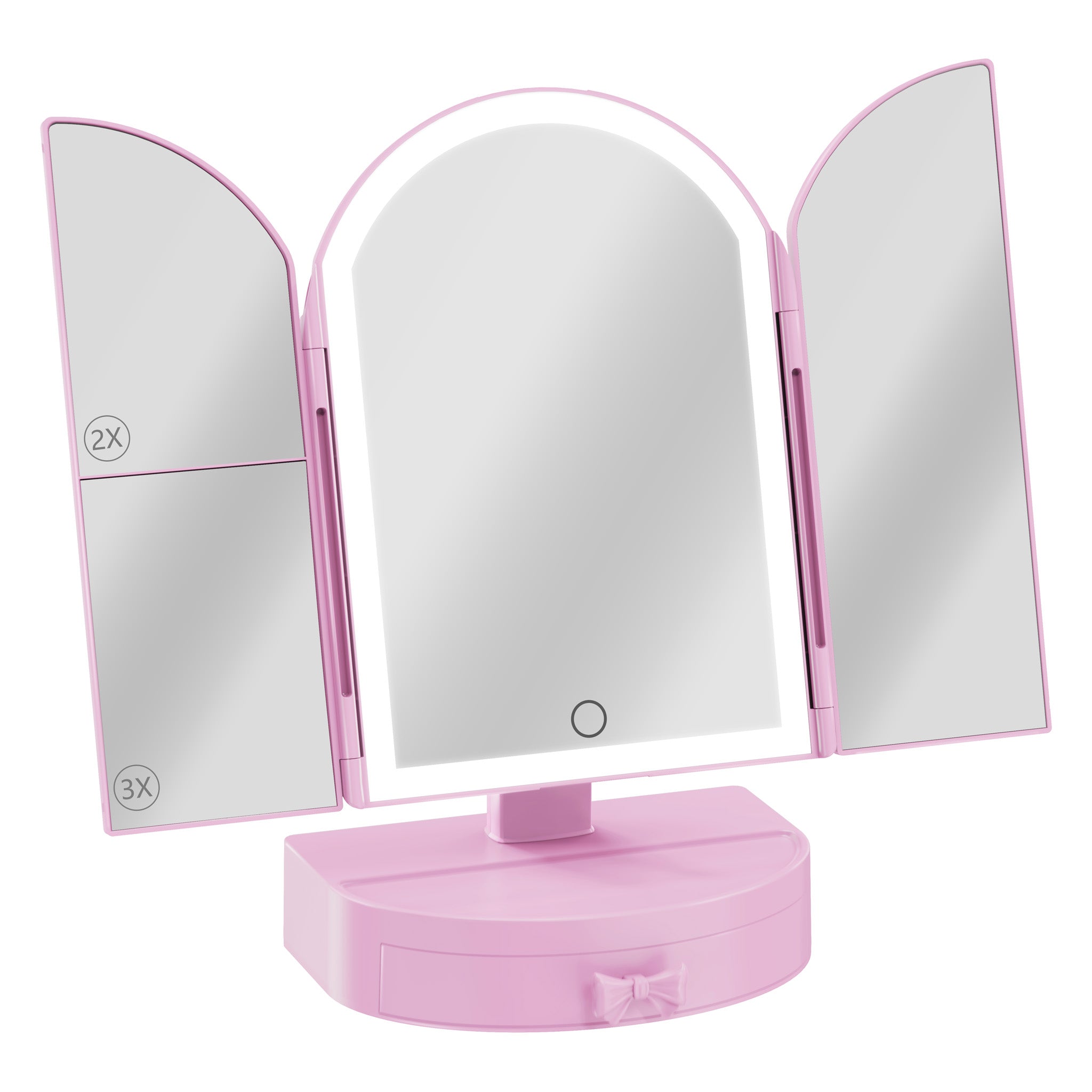 This ultimate vanity companion comes with a darling drawer to keep your precious trinkets and beauty must-haves tucked away. Its soft arch shape adds a touch of elegance and romance to any room. Plus, you can easily adjust the LED light temperatures to set the perfect mood, while the 2x and 3x magnified side mirrors let you get up-close for flawless touches.