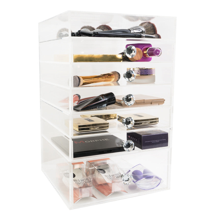 Organize and showcase your makeup in style with the Impressions Vanity Diamond Collection Acrylic Organizers. Perfect for professional artists and makeup lovers, our Diamond Collection Acrylic Organizers are made with high-quality crystal-clear acrylic with luxurious diamond-style knobs, they are the perfect companions to our Hollywood Vanity Mirrors!