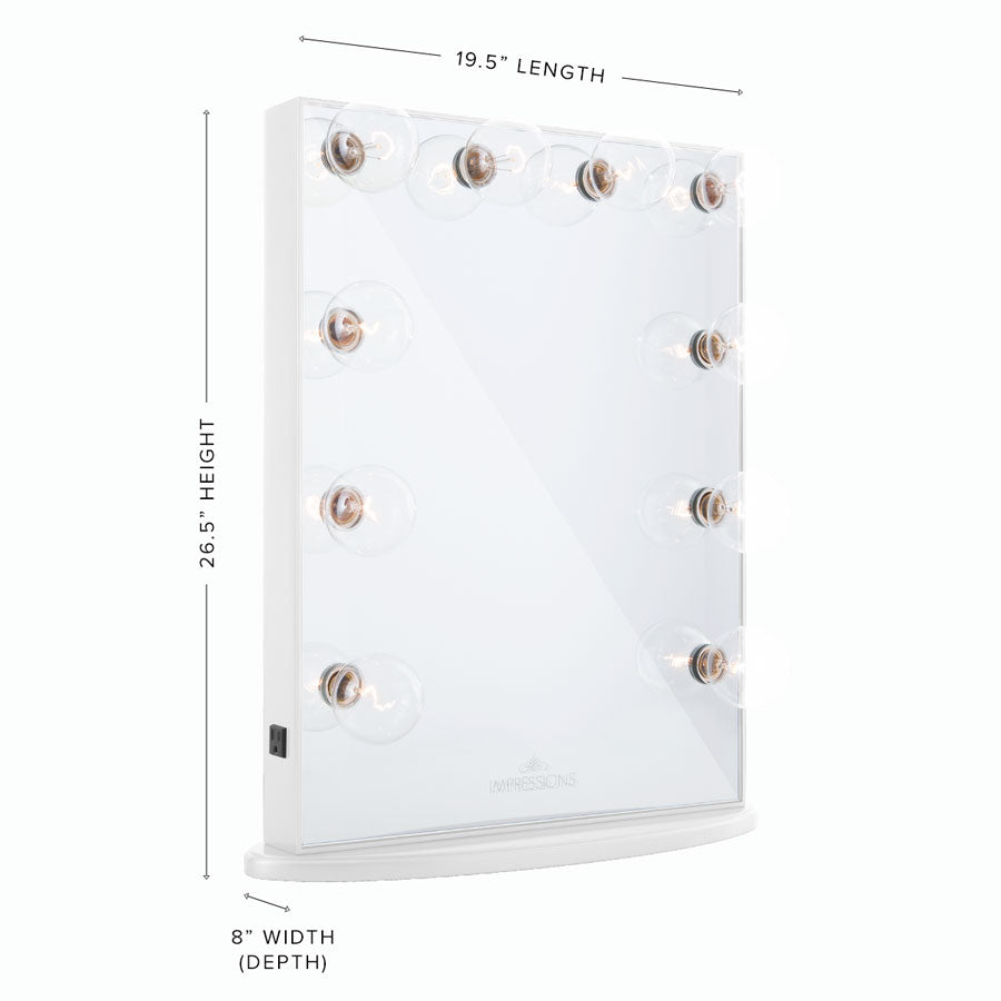 Perfect for those looking to add all the glitz and glam in a limited space (New York, we’re looking at you), the Impressions Vanity® Hollywood Glow® Vanity Mirror is an elegant overachiever, like a world-class ballerina, gracefully petite and exceptional, without an ounce of compromise think Natalie Portman in Black Swan… on second thought, maybe not?Designed with beautiful form, useful function, and durable quality in mind, Impressions Vanity® mirrors will provide glamorous lighting and superior clarity for years to come, guaranteed with our Five-Year Limited Warranty.Our flagship line, the bestselling Impressions Vanity® Hollywood Glow® Series is designed from start to finish and beautifully hand crafted using high-quality materials. Every step performed by top craftsmen within our high-standard facility, our Hollywood Glow® Series is masterfully created with signature finishes and glazed with the perfect touch of gloss.Truly an ultimate statement in vanity elegance, our exclusive patented Hollywood Glow® Frame design strikes the perfect balance between luxurious classic and ultra-chic modern, birthing a new brand of Hollywood glamour® and simple sophistication that has countless makeup lovers, pros and beauty bloggers falling in love. Join thousands of happy owners today and make your every makeup session an ethereal pleasure you’ll fall in love with each and every time!We love seeing your photos! Tag @ImpressionsVanity on Instagram with the hashtag #ImpressionsVanityGlow to submit your photo for a chance feature on our pages!