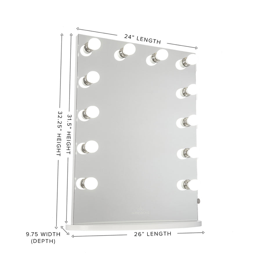 The Impressions Vanity Hollywood Premiere Slim XL Vanity Mirror is the modern vanity experience—a slim and sleek yet glamorous design that provides a perfect, even lighting and superior mirror reflection clarity. Ideal for makeup application at any setting, home or professional—also for taking that perfect Instagram selfie!Only Impressions Vanity® Hollywood Vanity Mirrors are certified by ETL, CE, and RoHS safety standards.We love seeing your photos! Tag @ImpressionsVanity on Instagram with the hashtag #ImpressionsVanity to submit your photo for a chance feature on our pages!