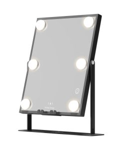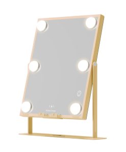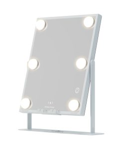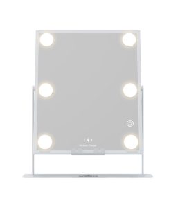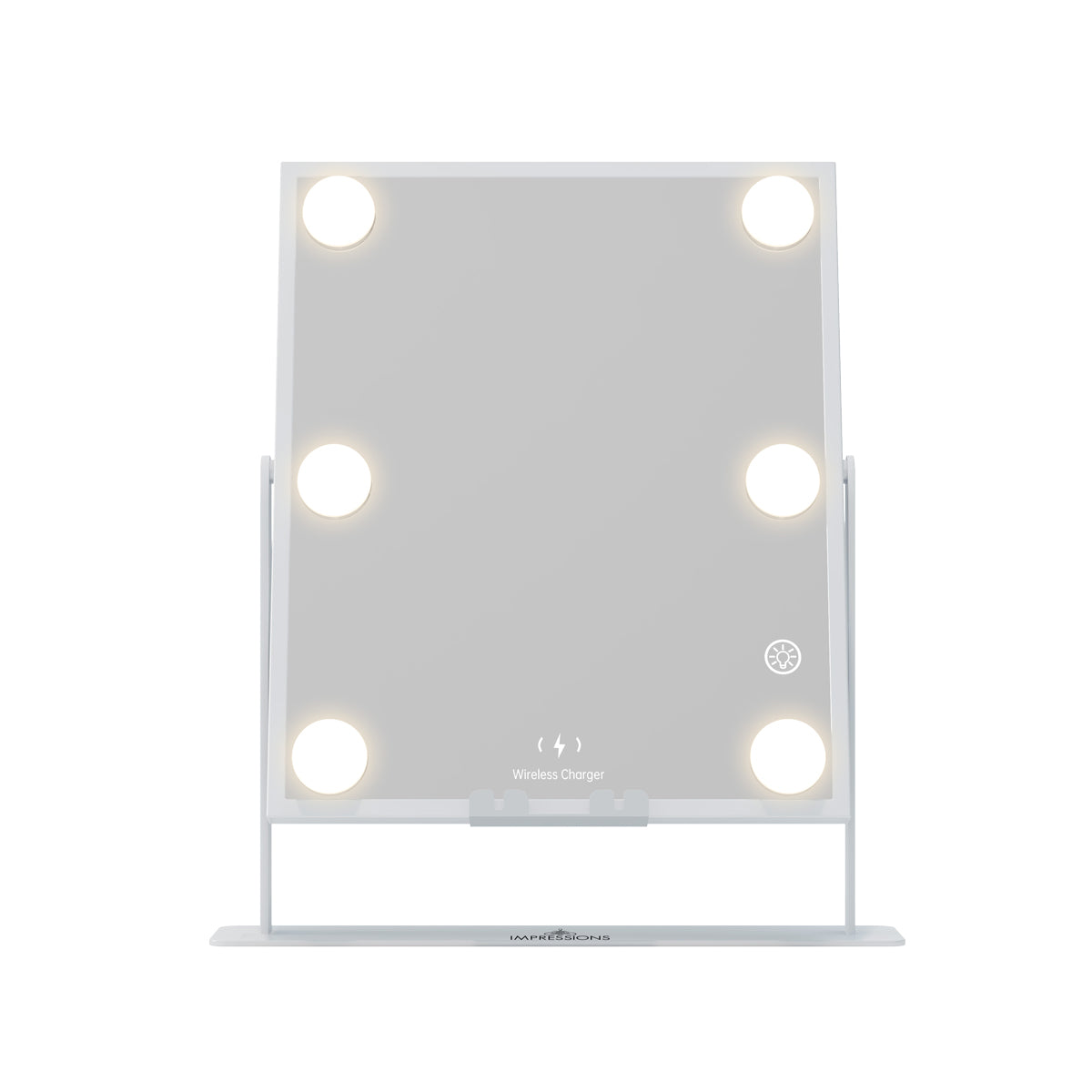 Our best-selling Hollywood Tri-Tone Makeup Mirror is back better than ever! Now featuring Bluetooth speakers and Wireless charging technology, you can fit this mirror anywhere and complete your vanity set! Equipped with built-in long-lasting LED Lights around the mirror for even lighting. Tap the power button to power it on/off and hold to adjust the brightness to your perfect level. Tap to switch between natural, warm, or cool lighting.