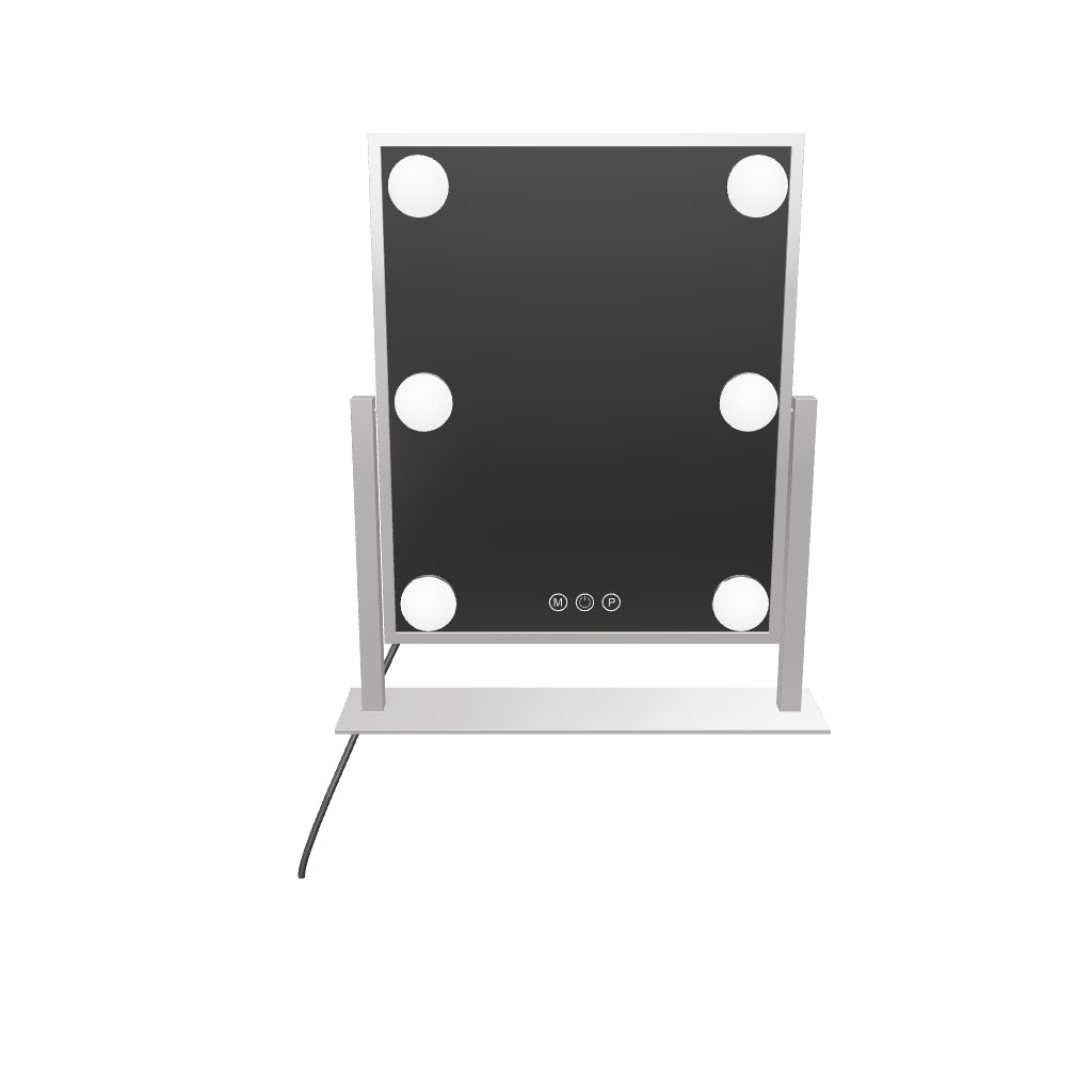 Fit our ultra-slim Hollywood Tri-Tone Makeup Mirror anywhere and complete your vanity set! Equipped with built-in long-lasting LED Lights around the mirror for even lighting. Tap the power button to power it on/off and hold to adjust the brightness to your perfect level. Tap the right button to switch between natural, warm, or cool lighting.