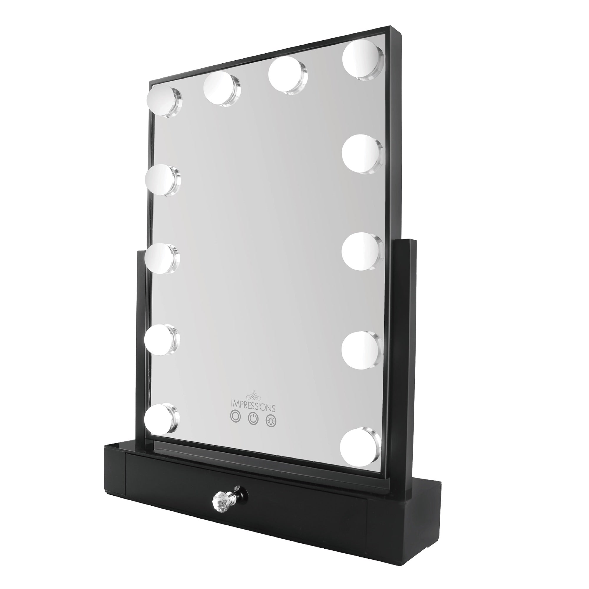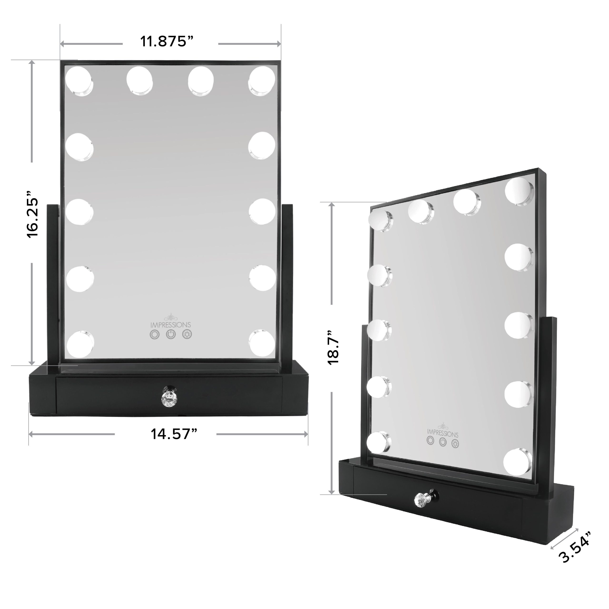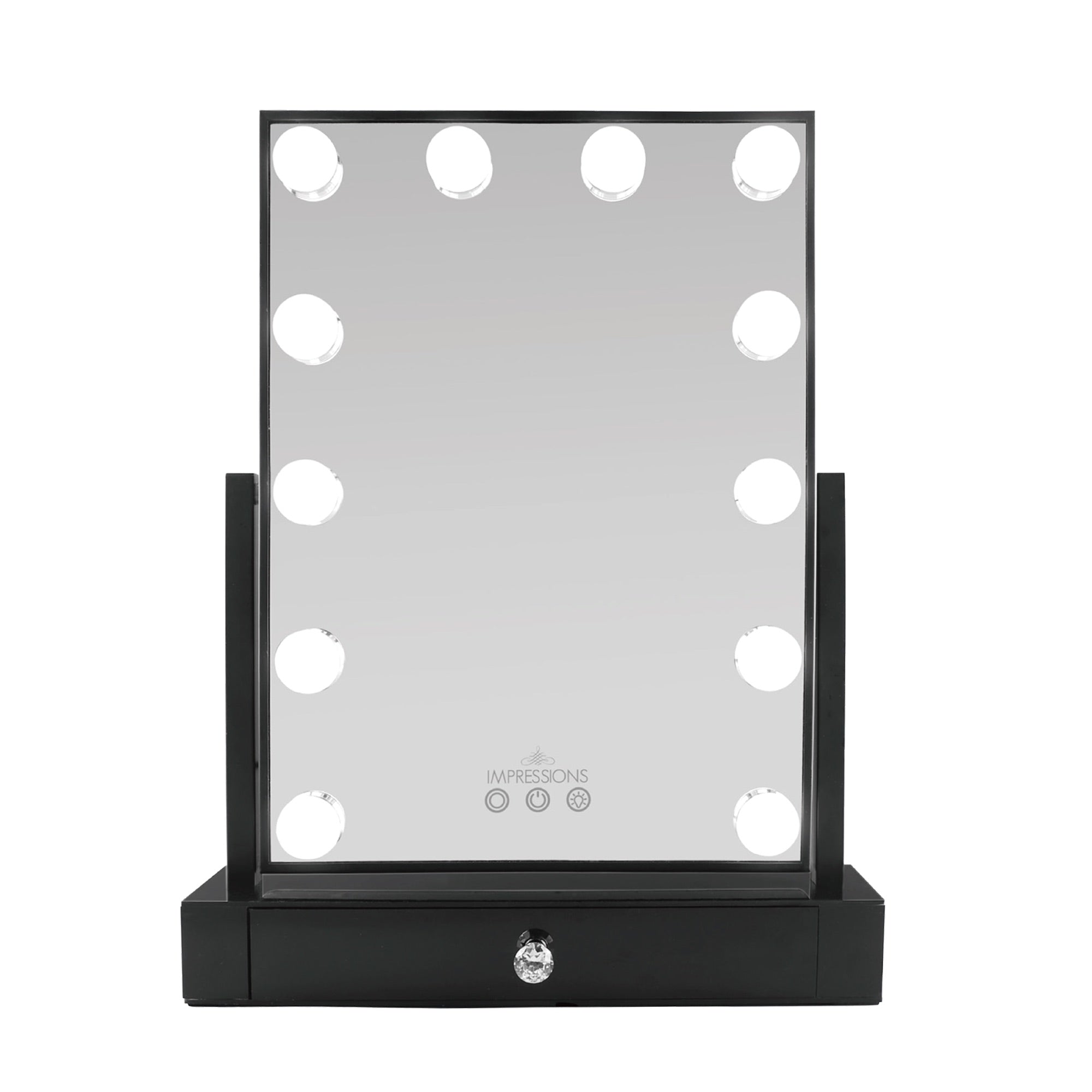 Impressions Vanity Shop Hollywood Tri-tone Xl Makeup Mirror With Drawer | Black