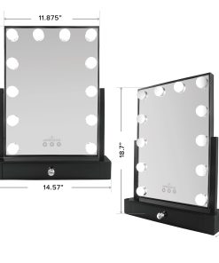Staying organized while getting ready has never been easier! With a built-in drawer adorned with a crystal knob, the Hollywood Tri-tone XL Makeup Mirror brings Hollywood glamour and functionality to your vanity space. Equipped with built-in long-lasting LED Lights around the mirror for even lighting. Tap the Power button to power it on/off. Tap the Light Color button to switch between cool white, natural and warm light tones. Hold the Light Bulb button down to adjust brightness.