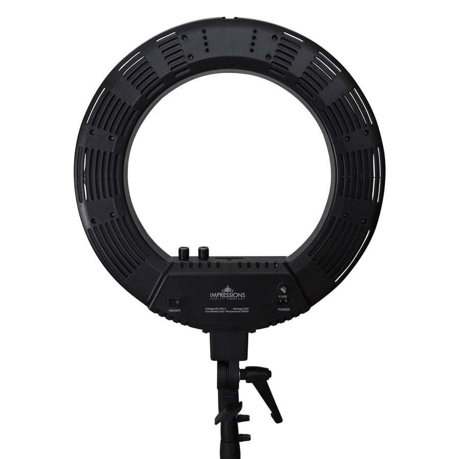 Impressions Vanity Shop Makeup Lighting 18-inch Duotone Led Vanity Studio Ring Light With Stand, Bag And Accessories | Black