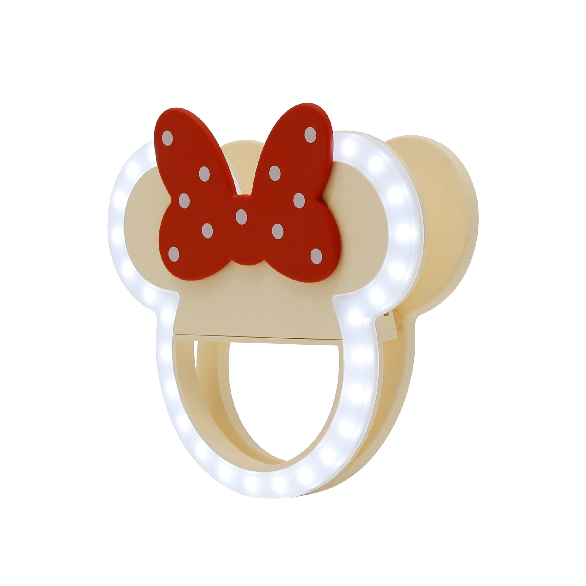 Take the perfect selfies or quick makeup touch-ups with your phone camera anywhere, anytime with the Disney Minnie Mouse Glow Me LED Beauty Ring Light. Shine brighter than ever with the simply ear-resistible beauty ring light wherever you are! Simply push the power switch to turn on, and adjust 3 levels of light intensity to your liking. Shaped in the classic Minnie Mouse silhouette including an outline of her beloved signature bow, create the perfect lighting for any selfie.