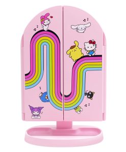 Transform your daily routine with a touch of friendship! Unfold the arch-shaped trifold mirror to reveal three panels and easily adjust to get the best angle for your makeup application. Personalize your LED lighting to fit your makeup needs, with three adjustable light temperatures. Artwork features Badtz-maru™, Chococat™, Cinnamoroll™, Hello Kitty®, Keroppi™, My Melody™, Pompompurin™ and Tuxedosam™.