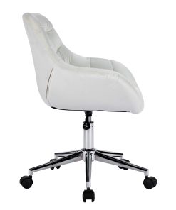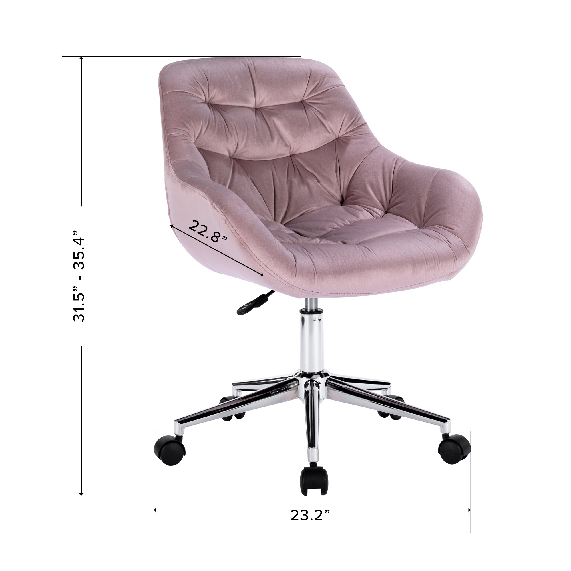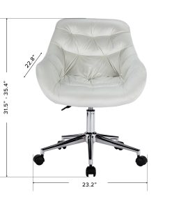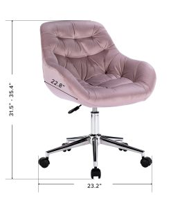 Designed for next-level comfort, the Ava Tufted Vanity Chair is made with a smooth soft velvet available in pink and white. Features a classic button-tufted backrest. This stunning swivel chair easily spins 360-degrees and sits on caster wheels, making transporting this piece simple beyond belief.Our products are engineered and tested to meet and exceed industry standards in all areas, weight-bearing exercises included. While we do not provide specific weight limits on seating, this chair is designed to support a full-sized adult.