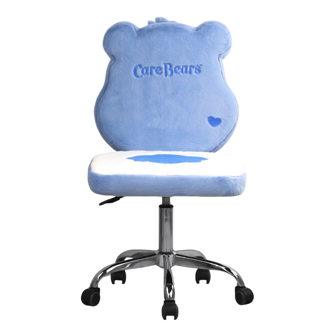 Feeling blue? Lift your spirits and take on the day with the Care Bears™ Grumpy Bear chair!Crafted for ultimate comfort and a touch of nostalgic charm, this super plush chair features embroidered details that highlights the iconic belly badge of your favorite Care Bear on the seat. With smooth-rolling wheels and 360 degree swivel, you can effortlessly glide from your vanity to your wardrobe or mirror without leaving your seat.