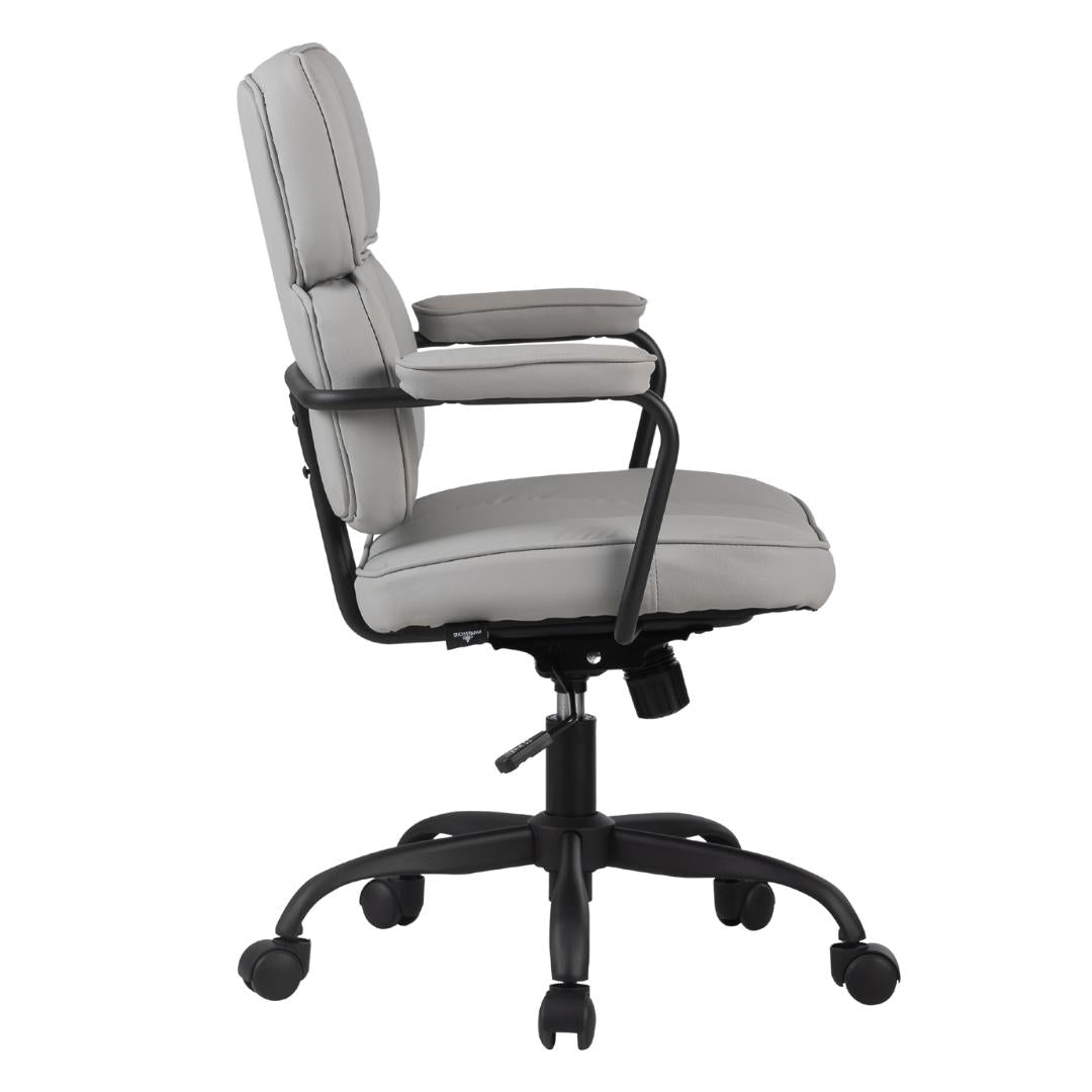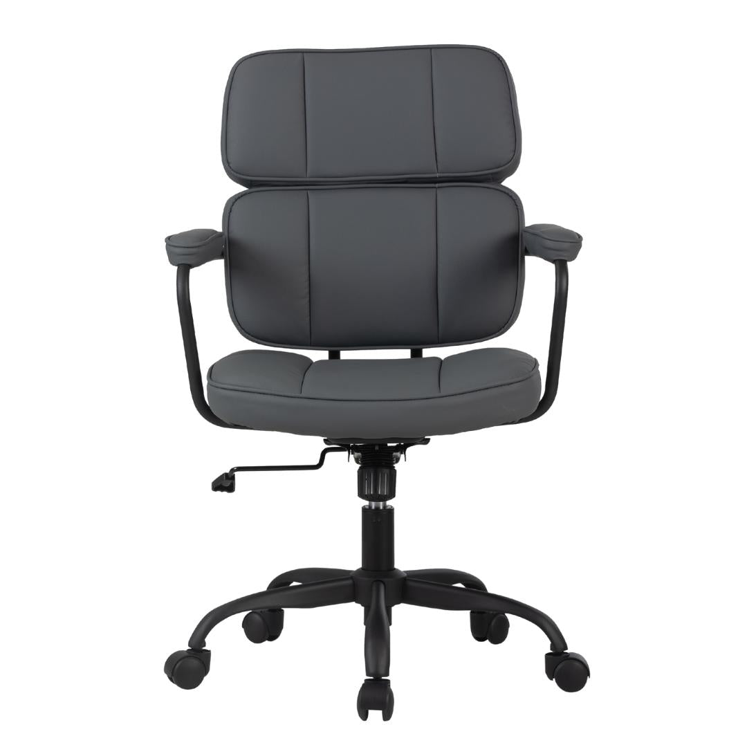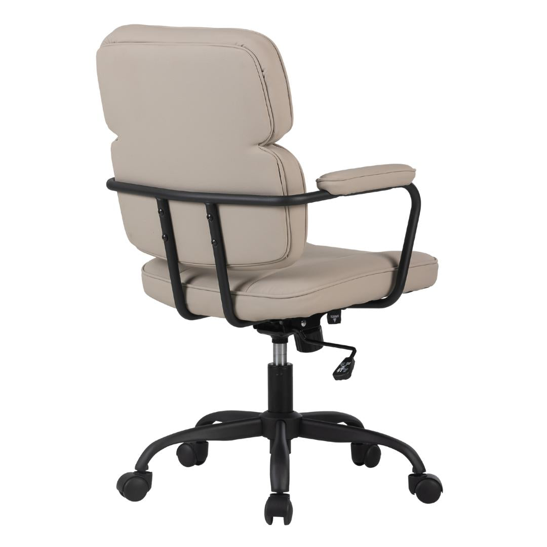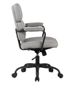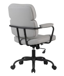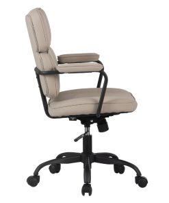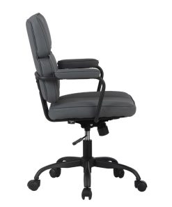 Crafted with supple faux leather upholstery, it offers both durability and style, while the padded armrests provide an extra layer of comfort. The cushioned backrest and sleek silhouette create a contemporary look that complements any décor.