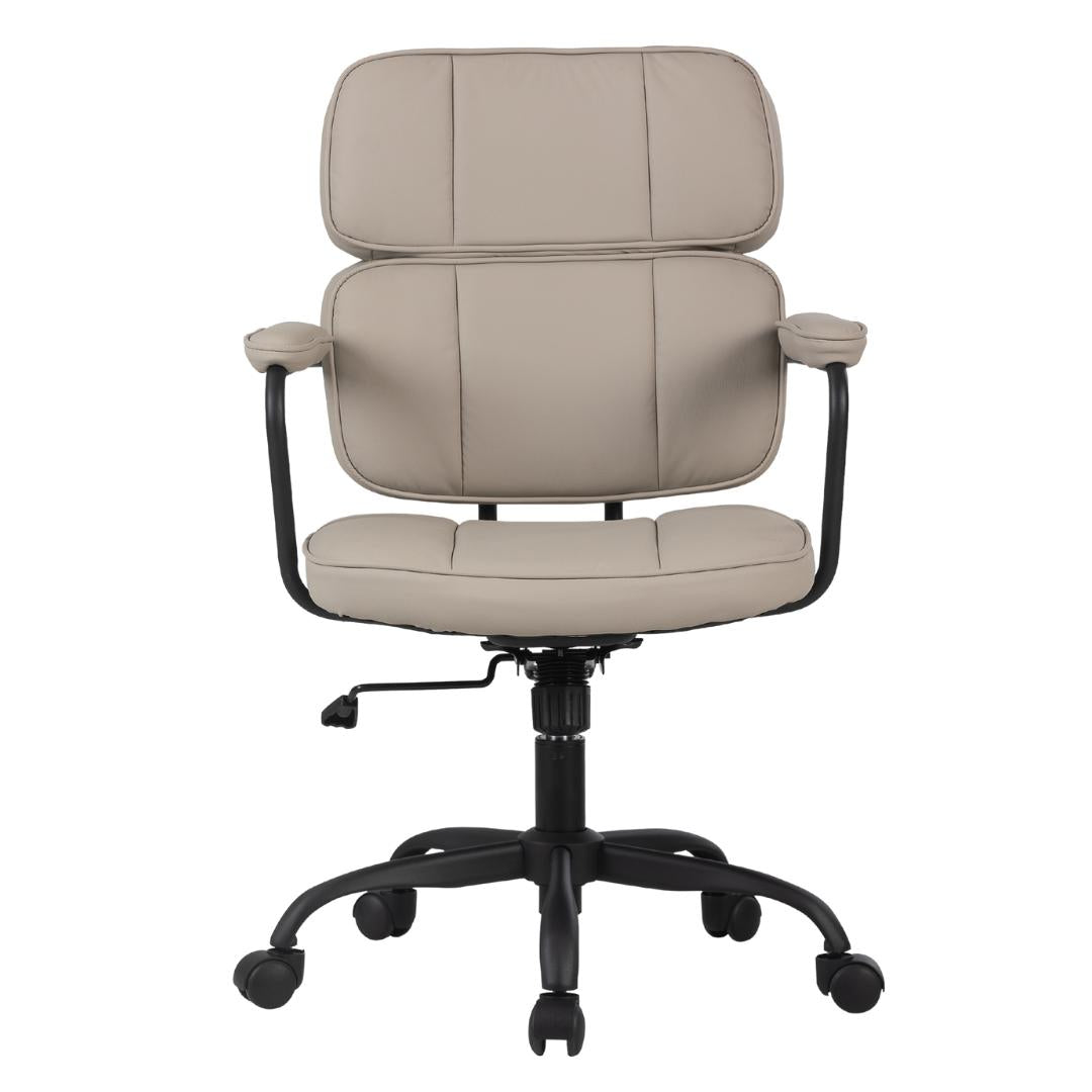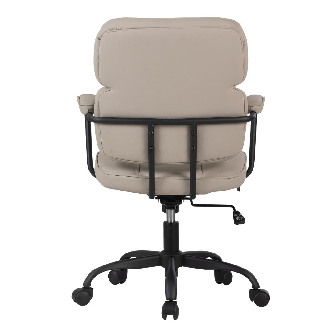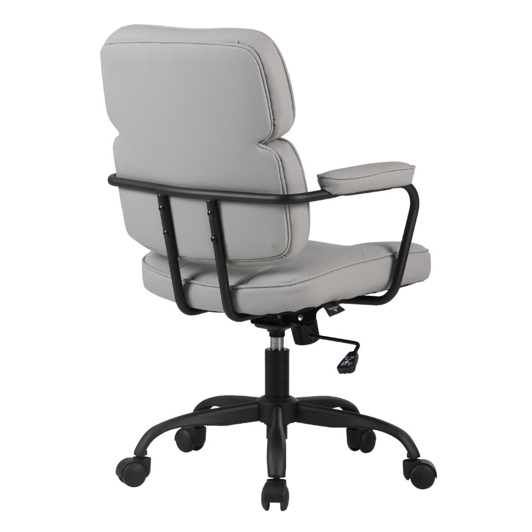 Crafted with supple faux leather upholstery, it offers both durability and style, while the padded armrests provide an extra layer of comfort. The cushioned backrest and sleek silhouette create a contemporary look that complements any décor.