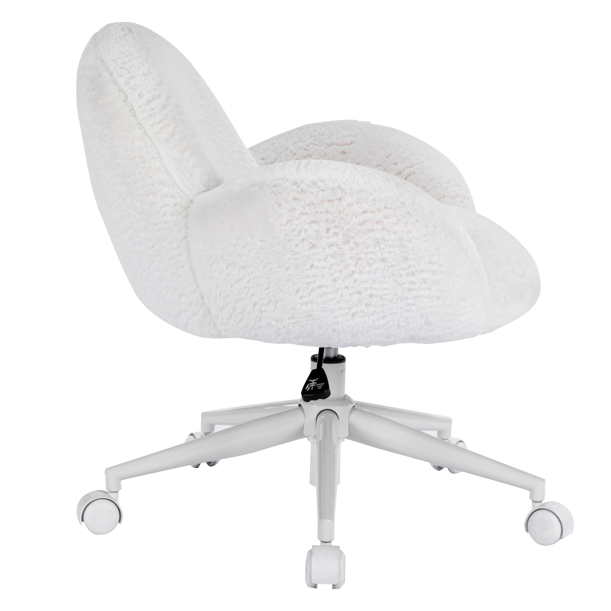 Add a cozy touch to your vanity with the Cloud Vanity Chair. The whimsical tufted design will have you dreaming of its cushioned seat, backrest, and armrests. Featuring a 360-degree seat swivel, adjustable height and tailored with a lush faux fur. This chair brings charm and comfort to any glam room!Our products are engineered and tested to meet and exceed industry standards in all areas, weight-bearing exercises included. While we do not provide specific weight limits on seating, this chair is designed to support a full-sized adult.