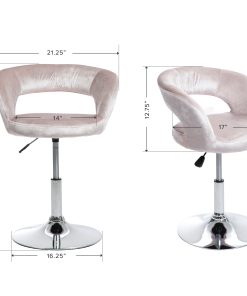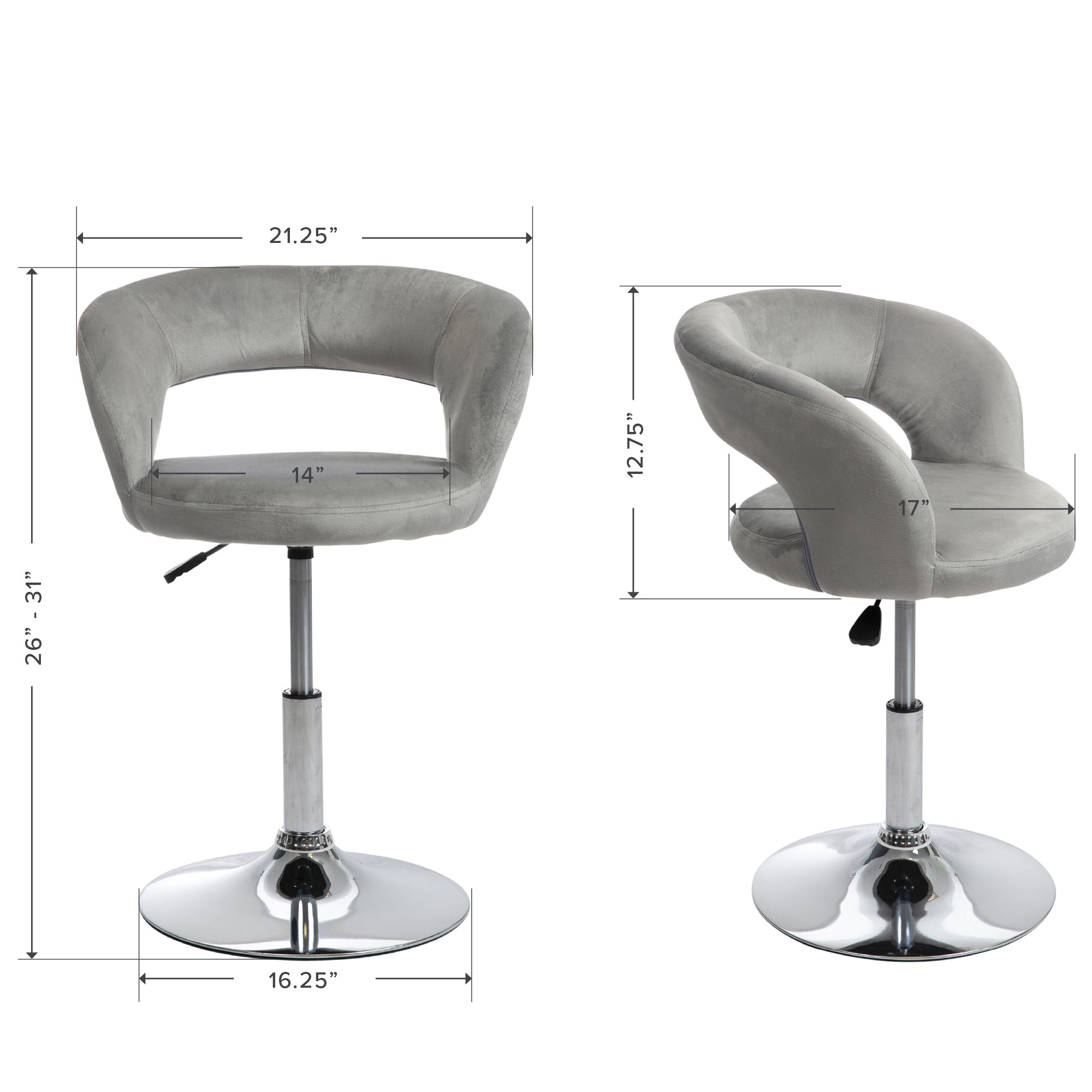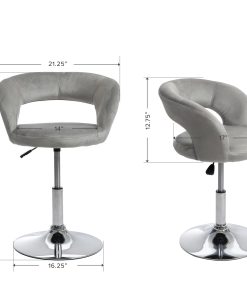 The Giselle Contemporary Vanity Chair is the perfect contemporary vanity stool to complete your makeup vanity set! Features 360-degree swivel chair and adjustable height. Our products are engineered and tested to meet and exceed industry standards in all areas, weight-bearing exercises included. While we do not provide specific weight limits on seating, this chair is designed to support a full-sized adult.