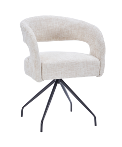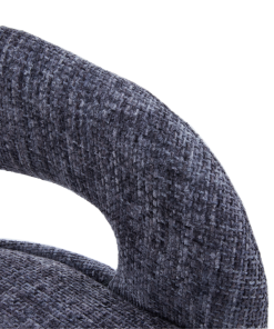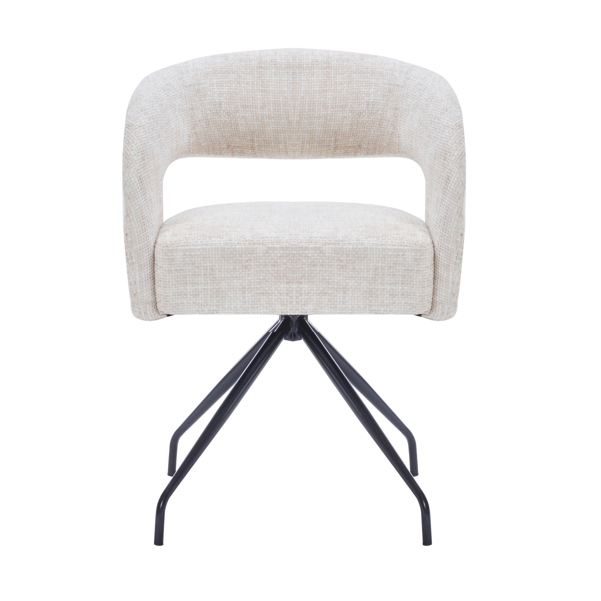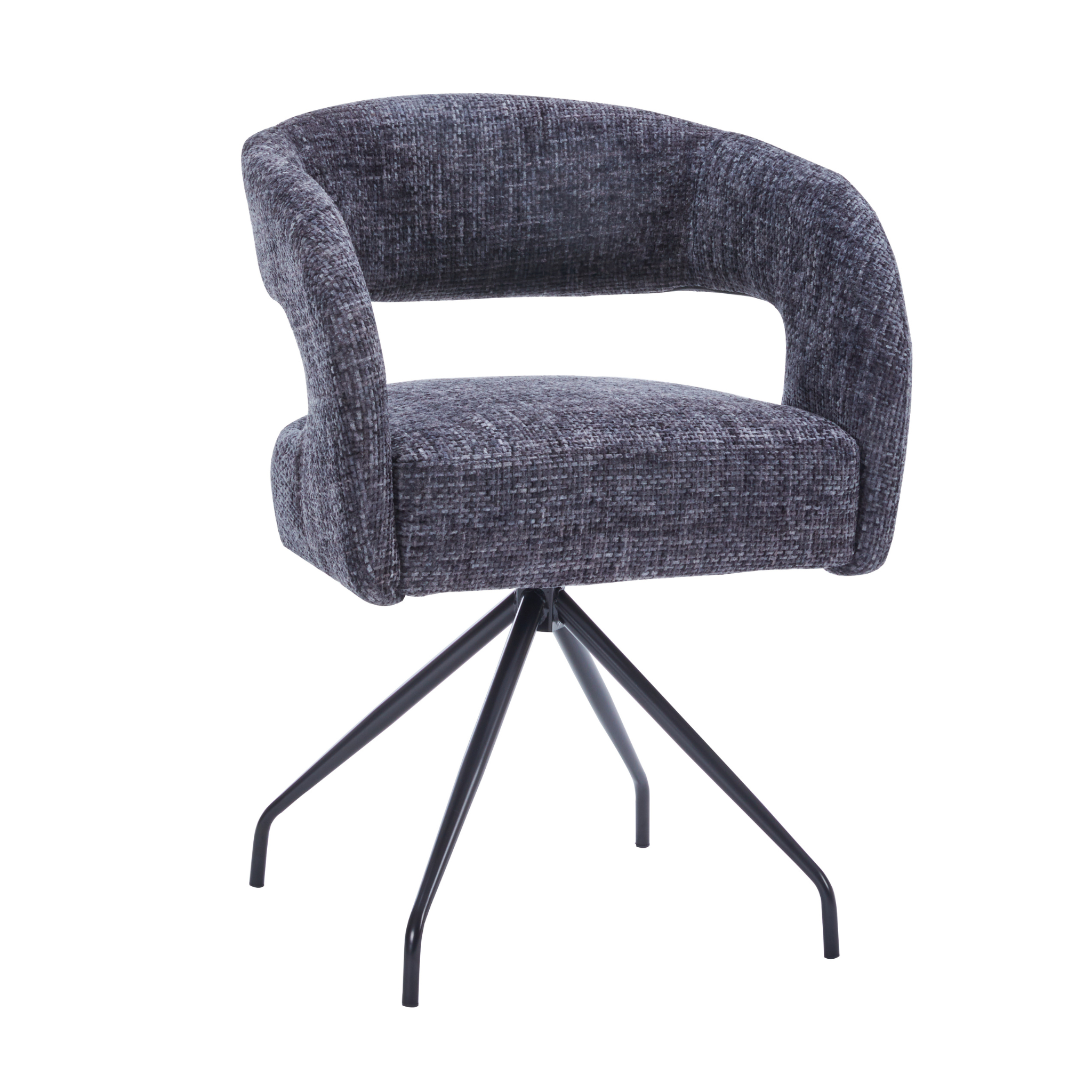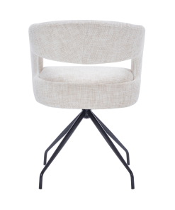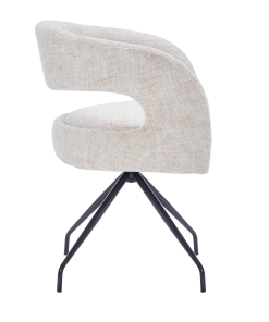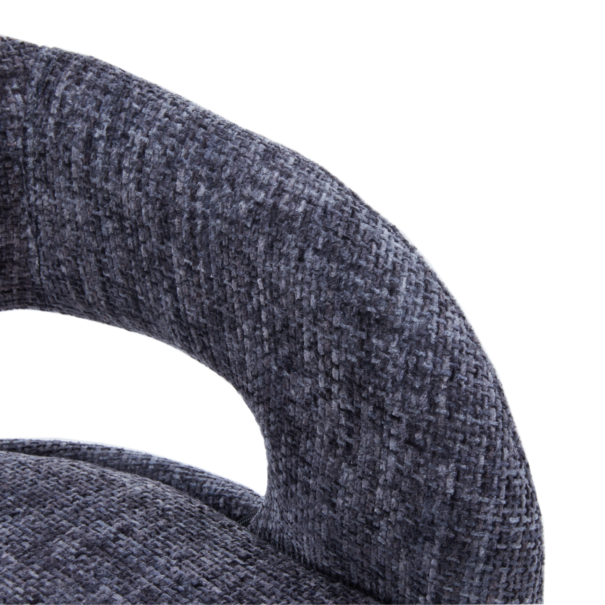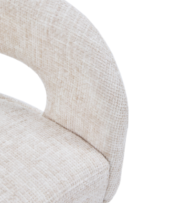 Upholstered in linen, this chair features a blend of multi-colored threads that adds depth to its soft, cushioned seat and open curved backrest.