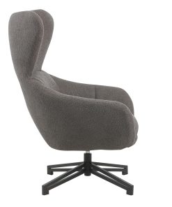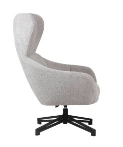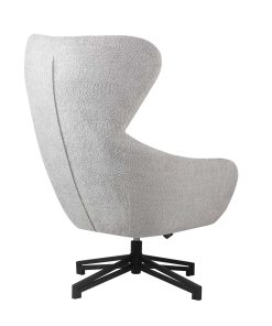 Upholstered in textured bouclé fabric, this chair features a high, winged backrest that provides both style and support, creating an eye-catching silhouette. The plush, cushioned seat and sculpted armrests offer a cozy seating experience, while the unique shape adds a touch of bold elegance to any room.