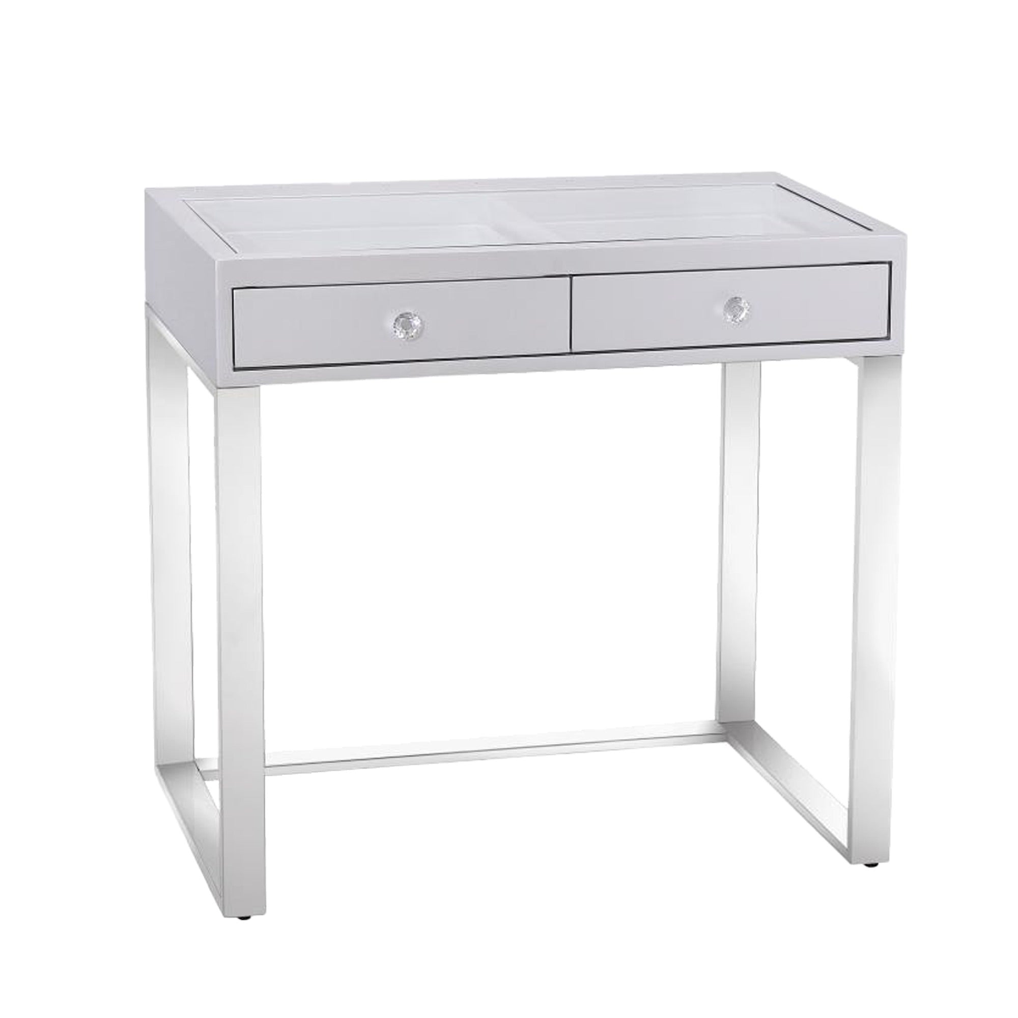 Get ready to slay the day with the Mini SlayStation® Emma Vanity Table. An essential item to add to your glam room and to perfect your makeup routine. This table features two equally sized drawers that gleam with the beautiful crystal lux drawer knobs.
