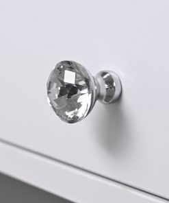 Move out the way, ultimate storage space with the Odette Slaystation Vanity Table is here to stay! More modern than ever before, a fresh take on an old Hollywood classic. This bundle features our SlayStation tabletop that includes 5 drawers. The side drawers feature a clear glass top for you to display your vanity accessories and makeup with a chic border! The Odette Slaystation is a sleek design that elevates the look of any space. The table has crystal lux knobs for a polished, refined look. Plus, the center drawer has 6 preset compartments for all your beauty essentials.