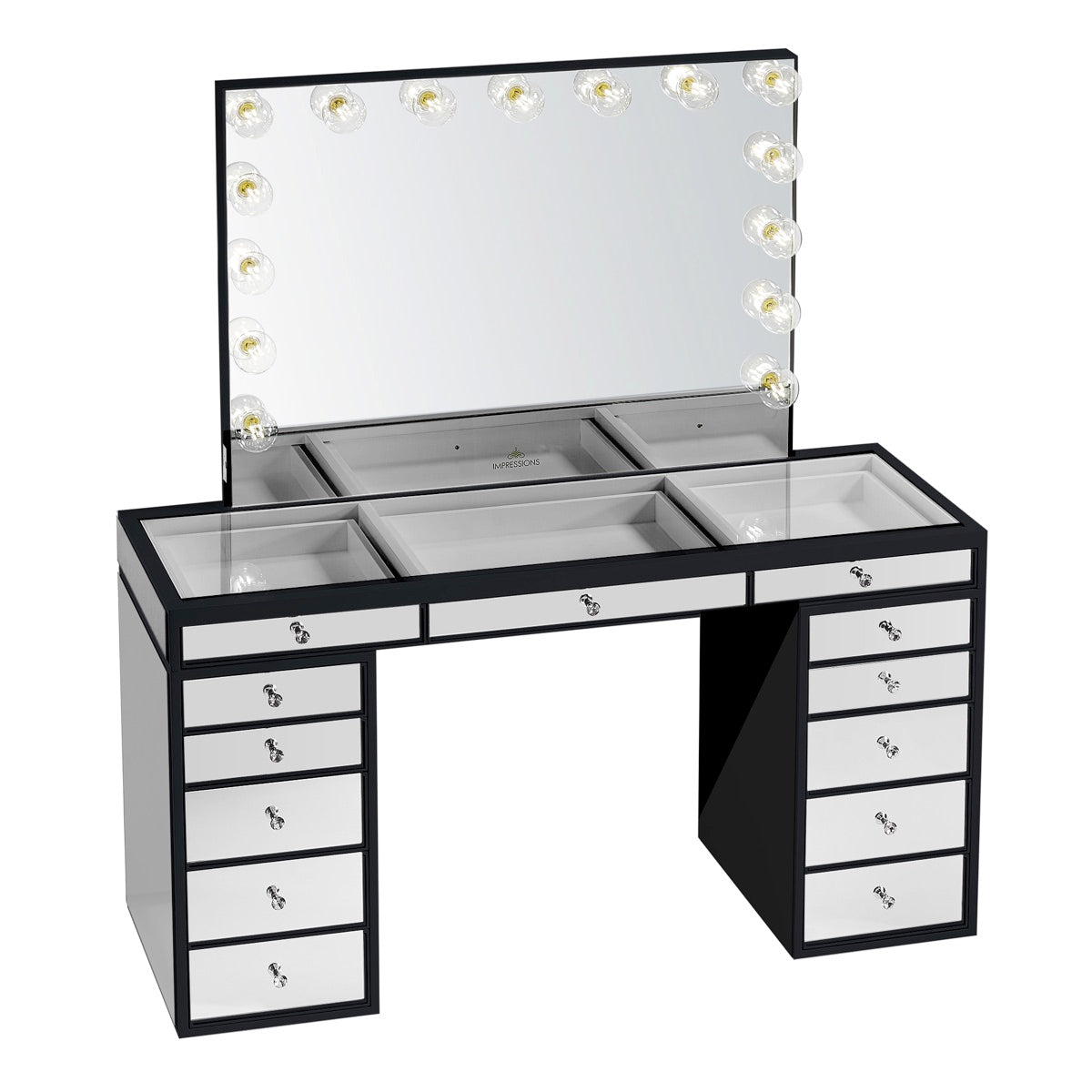 Be the first to review “Impressions Vanity Shop Vanity Desks & Tables Slaystation® Pro Premium Mirrored Vanity Table | Black” Cancel reply
