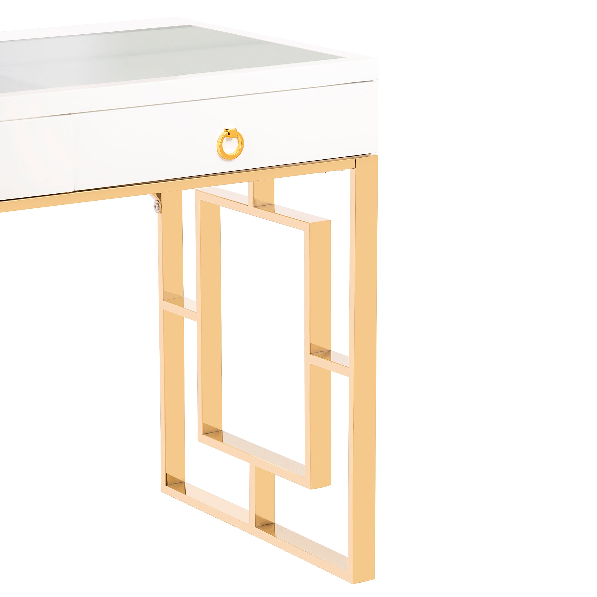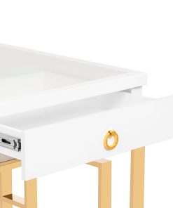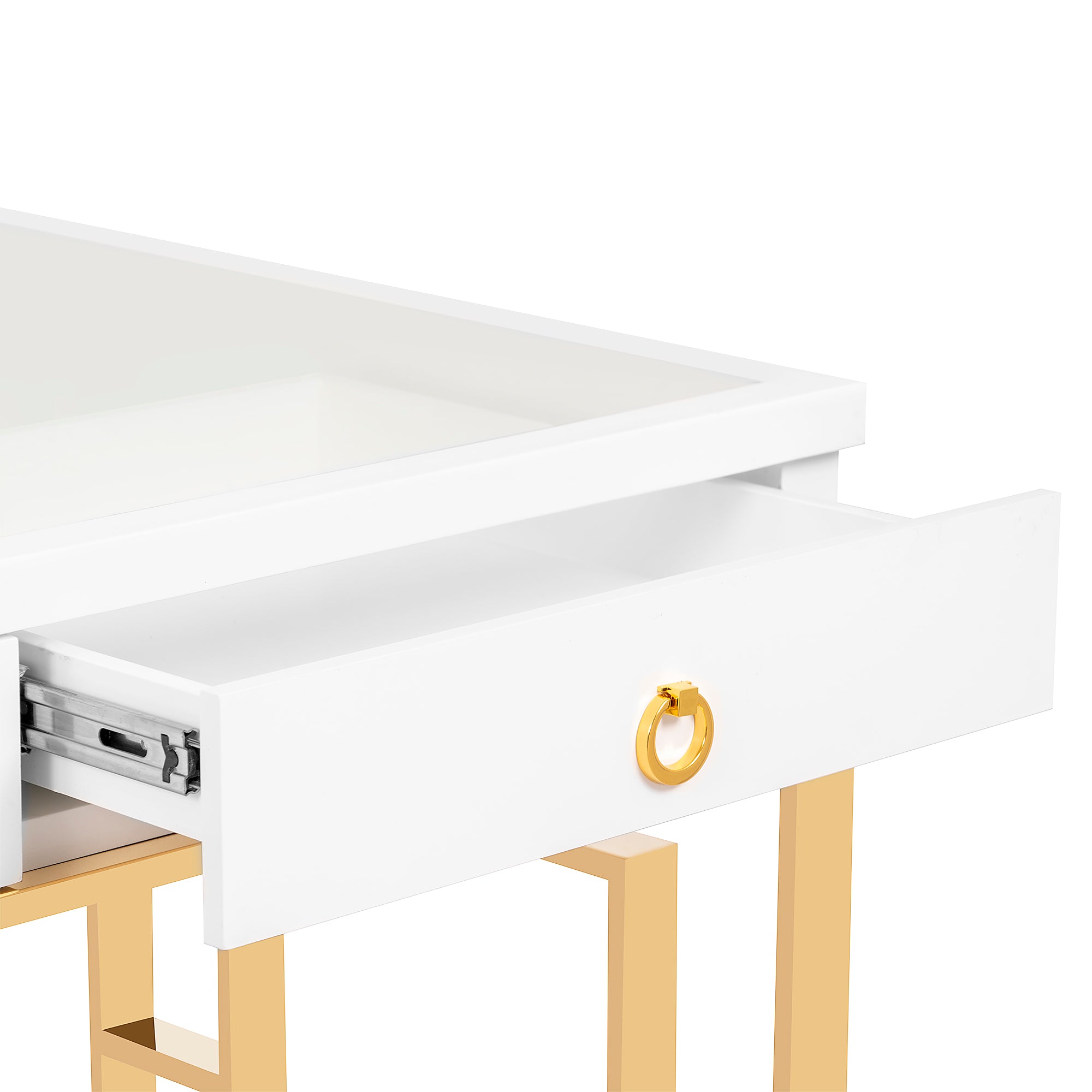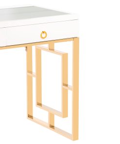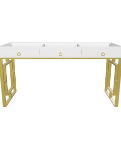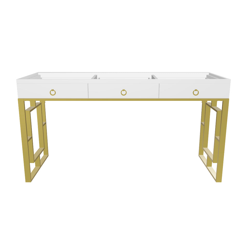 There is nothing more classy and regal than the combination of white and gold. Get ready to slay the day with the Skylar SlayStation® Vanity Table. An essential item to add to your glam room and to perfect your makeup routine. This table features three soft-closing drawers that gleam with the beautiful golden knobs. All three drawers are equally sized. This table comes with our unique designed brilliant golden legs.
