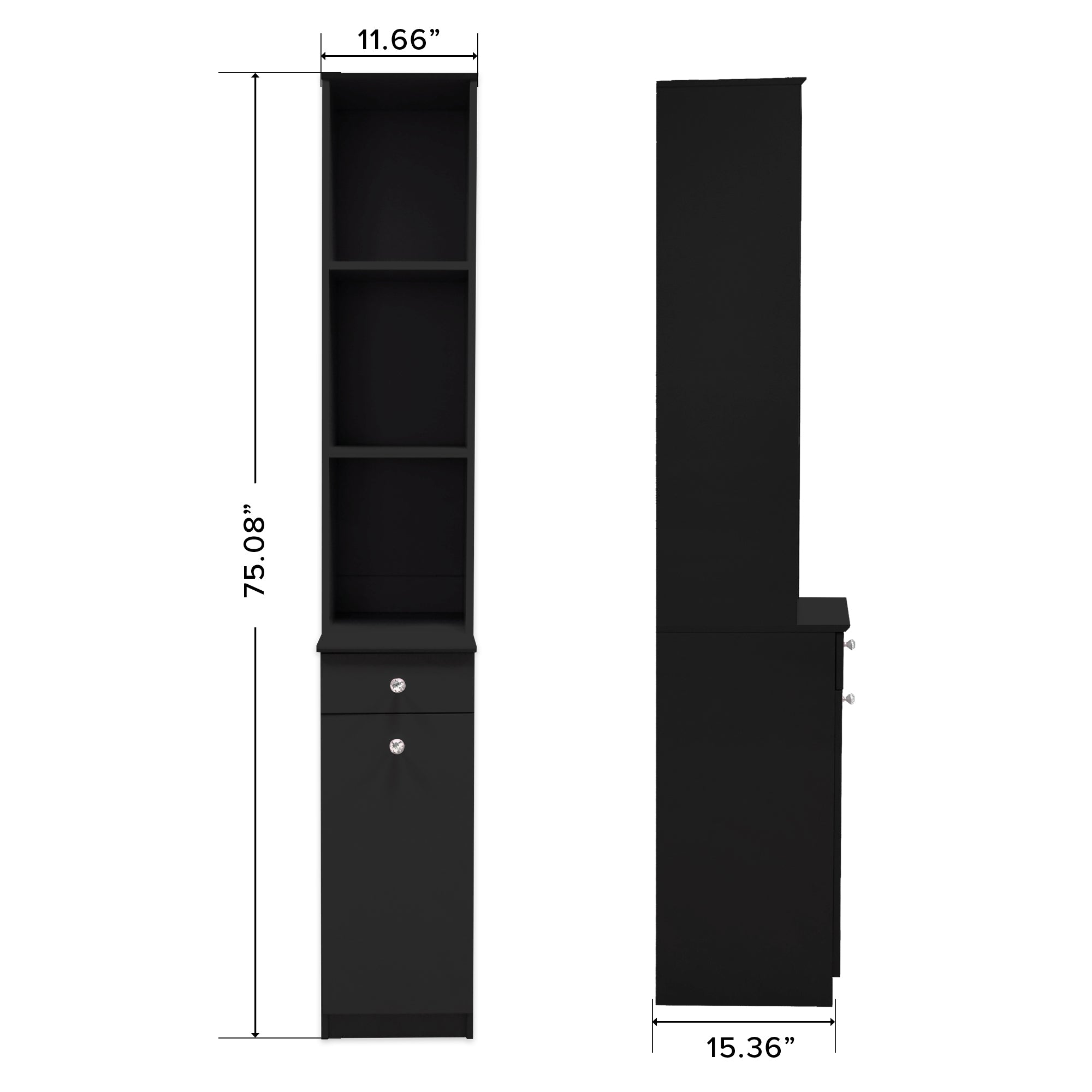 Classic details including optimum space and crystal knobs give the innovative Slaystation® Storage Cabinet timeless appeal. Three luxury shelves to display your most cherished items rests on a plinth cabinet base. Designed to pair with any Impressions Vanity piece, it creates a glam space that is both functional and stunning.Comes with an anti-tipping bracket that may be installed at the back for your safety. Screws and plastic wall dowels are included for mounting! However, different wall materials require different types of fixing devices. Use fixing devices suitable for your walls. If you are uncertain about what type of mounting device to use, please contact a local hardware store for help.