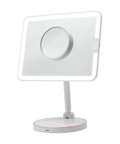Impressions Vanity Shop Snow White Compact Mirror With Wireless Power Bank Charging Base
